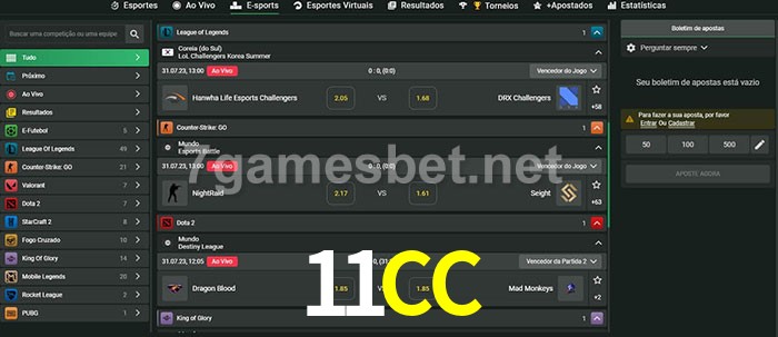 A 11CC oferece uma seleção abrangente de opções de apostas em e-sports. Com uma ampla variedade de jogos para escolher, incluindo League of Legends, Dota 2 e CS:GO, há algo para todos os fãs de esportes eletrônicos. Além das apostas pré-jogo, a 11CC também oferece opções de apostas ao vivo para muitos de seus eventos de e-sports. Portanto, seja você um novato em apostas em e-sports ou um profissional experiente, a 11CC bet tem tudo o que você precisa para começar.